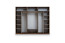 Dulapul este bine compartimentat, fiind împărțit în 3. Cele 2 părți laterale au mai multe polițe, dar și bare pentru umerașe. În spatele ușilor cu oglinzi ale compartimentului central se află 2 polițe late și o bară pentru umerașe. Un alt element specific acestei colecții este iluminatul cu bandă LED cu lumină caldă a unui compatiment deschis pentru un o notă dramatică, așadar regăsim acest element la cele 2 noptiere și la comoda cu oglindă. Deși tăblia face să pară că ar ocupa mult loc, patul este slim având doar 214cm adâncime,iar fară tăblie doar 188 cm lungime, pat care de asemenea are și somieră rabatabilă și ladă pentru depozitare a lenjeriilor.